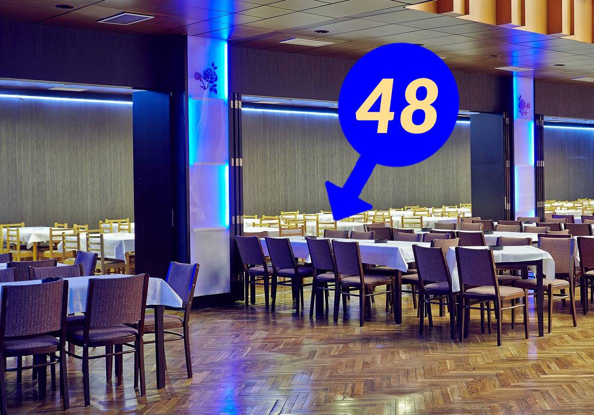 Místa mají dobrý výhled na dění na sále a blízko k občerstvení a bezproblémový přístup na tanec i k sezení