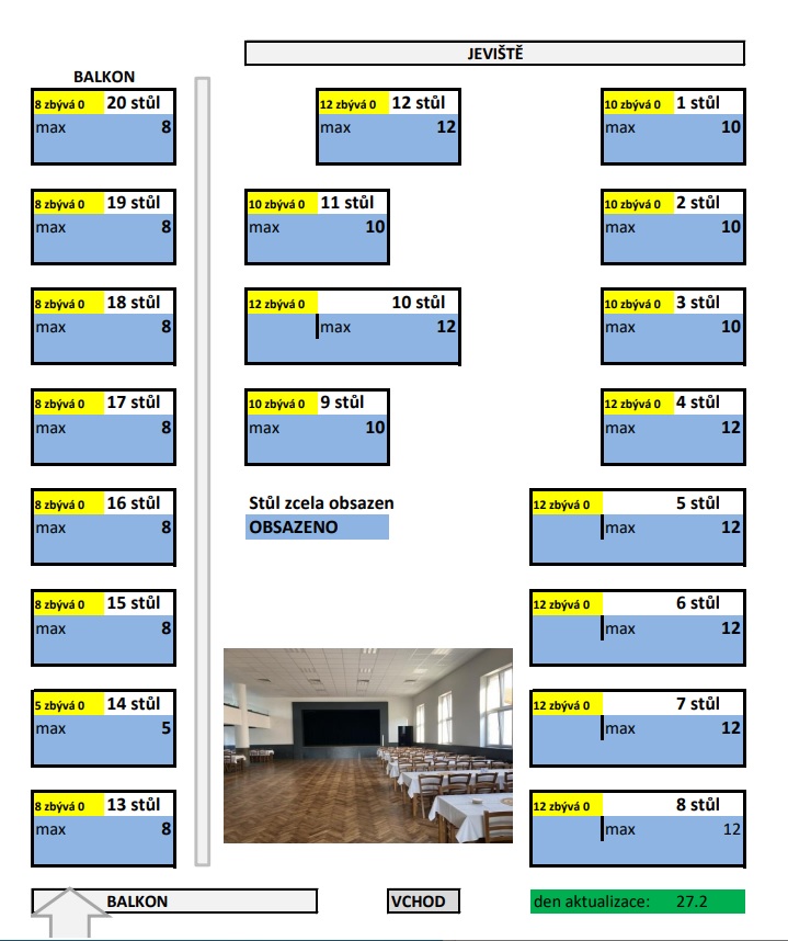 Od 1.11.2023 je možné rezervovat místa na sále.